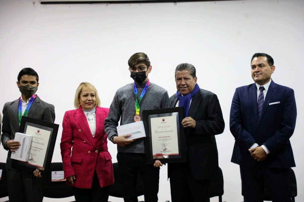 También quienes recibieron mención honorífica en dicha justa académica fueron reconocidos por el mandatario estatal: Abdiel Rodríguez Román, Lía Arteaga Murillo, Javier Alejandro Sánchez Barrón y Braulio González García.