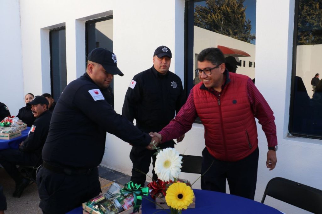El alcalde señaló que la Policía Municipal suele ser el primer respondiente en las emergencias y reconoció además su voluntad de trabajar por el bienestar de la población y compromiso de hacerlo con honestidad, por ello, a partir de la primera quincena de enero obtendrán el aumento salarial, el cual no recibían en años.