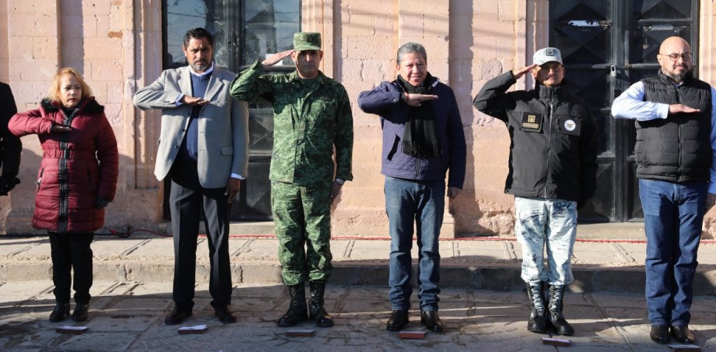 Vetagrande, Zac., 10 de enero de 2023.- Al encabezar la ceremonia de honores a la bandera en la cabedera municipal de Vetagrande, el Gobernador David Monreal Ávila afirmó que existe un propósito muy claro para Zacatecas: lograr paz, desarrollo y bienestar que su población necesita.