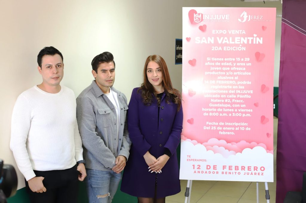 La convocatoria fue presentada por la titular del INJJUVE, Ing. Laura Marlinet Carrillo, quien, acompañada de su equipo de trabajo,mencionó que la Expo-venta se llevará a cabo única y exclusivamente el próximo 12 de febrero en el andador Benito Juárez en el corazón de Jerez; misma que tendrá horario extendido de 10:00 am a 6:00 pm, con el objetivo de impulsar la economía local. Esta invitación está dirigida principalmente a jóvenes que deseen mostrar su productos para venta con motivo del Día del Amor y la Amistad.