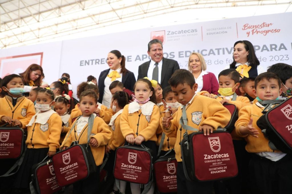 Zacatecas, Zac., 28 de febrero de 2023.- El Gobernador David Monreal Ávila inició la entrega de la primera parte de recursos para fortalecer la educación, de un total de 86 millones de pesos, que serán distribuidos en toda la entidad y permitirán a las familias zacatecanas adquirir uniformes escolares, así como en becas, equipo de cómputo y diversos apoyos educativos para el bienestar.