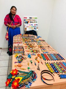▪️La emprendedora elabora artesanías de chaquira, que comercializa en el callejón de La Bordadora y en eventos de Gobierno del Estado, dirigidos a mujeres