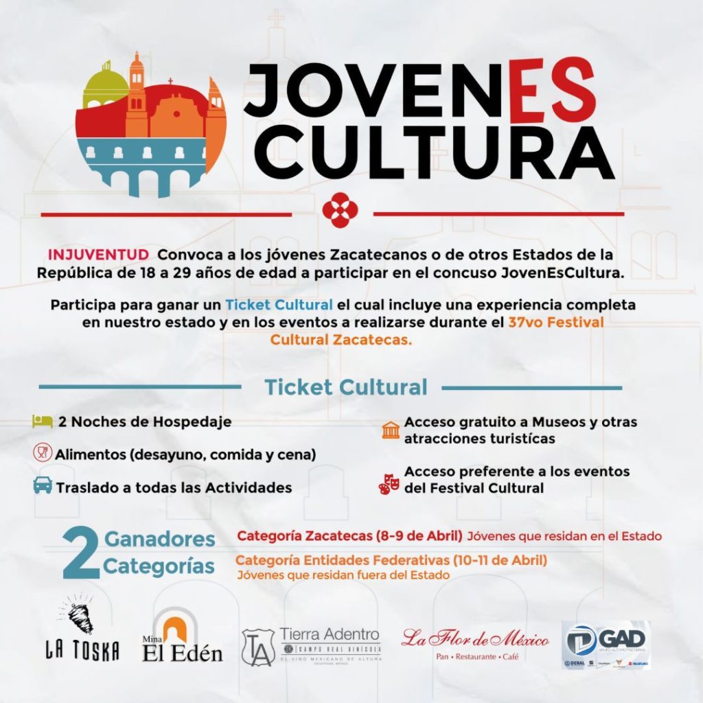 Zacatecas, Zac., 6 de abril de 2023.- El Instituto de la Juventud del Estado de Zacatecas (Injuventud) lanzó el concurso denominado “Joven es Cultura”, que convocó a personas de los 18 a los 29 años de edad a participar por un ticket y poder tener una experiencia completa en el estado y en los eventos que se realizan dentro del Festival Cultural Zacatecas 2023.