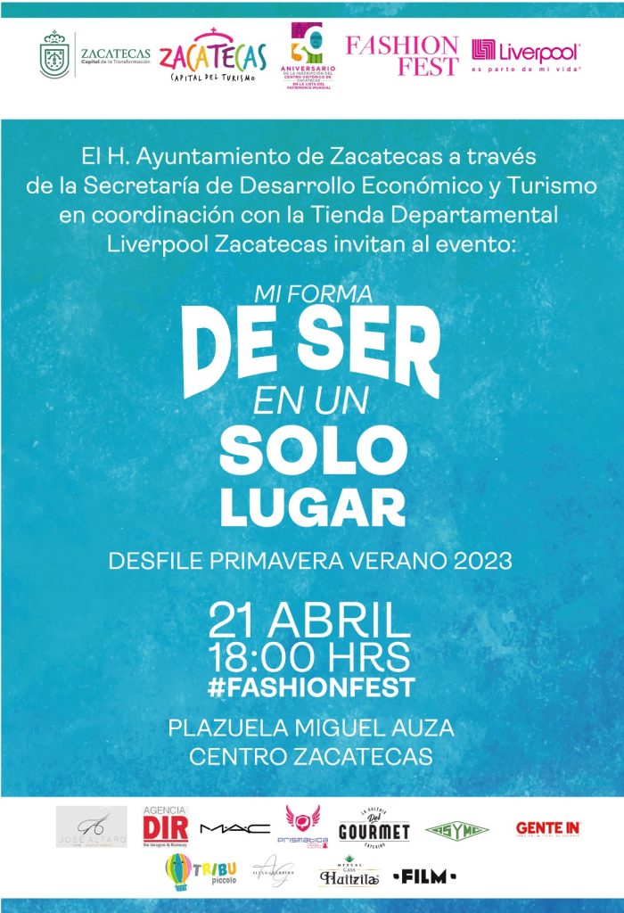 El Ayuntamiento de la Capital, a través de la Secretaría de Desarrollo Económico y Turismo en coordinación Liverpool Zacatecas, realizarán la edición número 40 del Fashion Fest “Mi forma de ser en un solo lugar”.