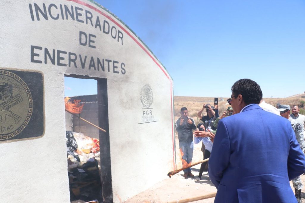En el segundo evento ordinario de incineración de narcóticos, el gobernador del estado, David Monreal Ávila, agradeció la presencia del primer edil de Fresnillo. “No sólo viene atestiguar: también viene a verificar los trabajos de aseguramiento que se han realizado y la destrucción de enervantes, que es lo que nos tiene aquí. No vamos a parar hasta no ver la pacificación de nuestros pueblos”.