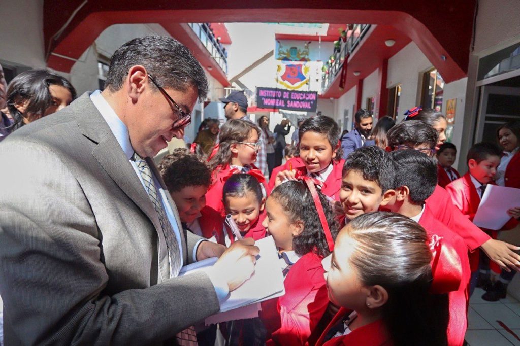 Ante alumnos de primaria, secundaria y bachillerato, el primer edil señaló que ha visitado más de 500 instituciones educativas para promover el respeto a los símbolos patrios y motivar a los niños y jóvenes a luchar para cumplir sus sueños.