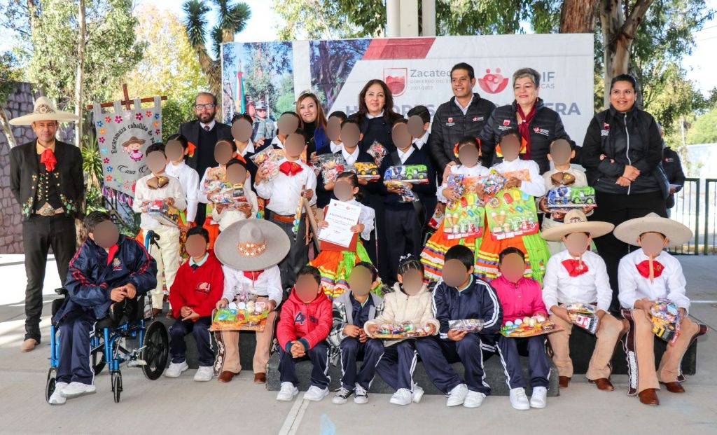 Zacatecas, Zac., 27 de noviembre de 2023.- Luego del acto cívico de Honores a la Bandera, que se celebró en las oficinas centrales del Sistema Estatal para el Desarrollo Integral de la Familia (SEDIF), la Presidenta Honorífica, Sara Hernández de Monreal, reconoció a niñas y niños de Casa Cuna “Plácido Domingo” por haber destacado en la final del Circuito Nacional de Caballito de Palo.
