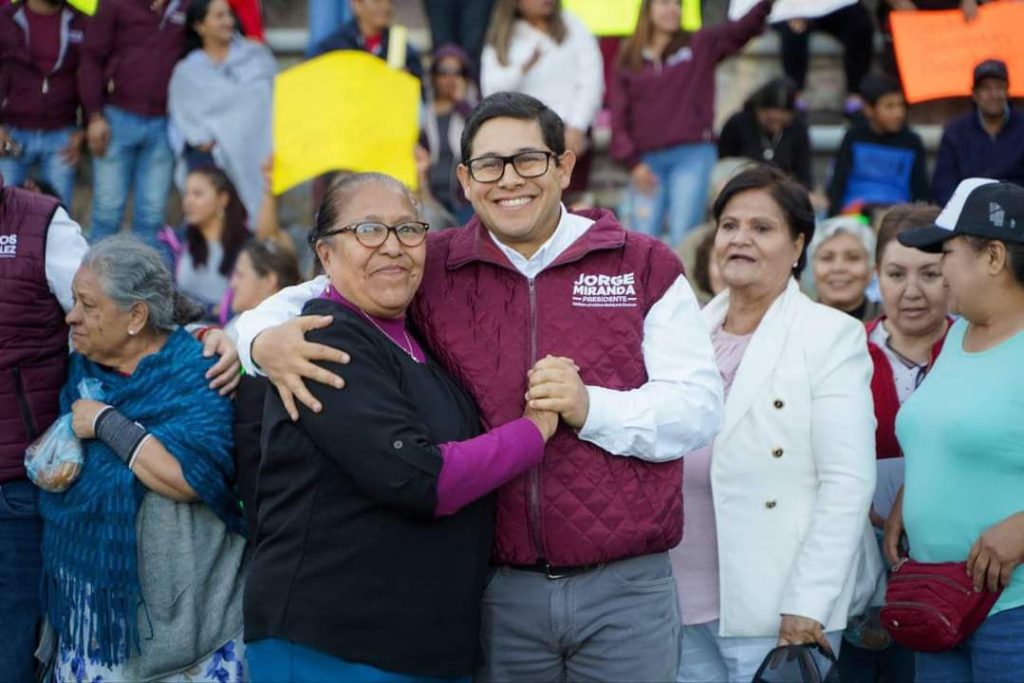 El Dr. Jorge Miranda Castro estuvo acompañado por el candidato a la diputación local por el distrito 2, Santos González, quien dijo que acompañará su proyecto para construir el segundo piso de la transformación de la Capital.