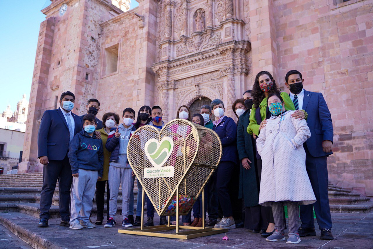 _• En el Centro Histórico están instalados cuatro Corazones Dorados que recolectarán taparroscas de plástico._