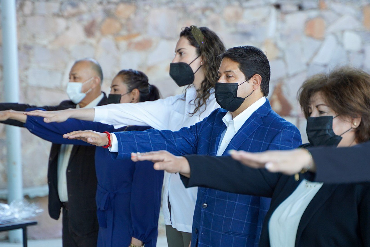 Este lunes, el alcalde capitalino, Jorge Miranda Castro encabezó los Honores a la Bandera en la Escuela Primaria Pánfilo Natera, acompañado de la secretaria de Desarrollo Social, Cecilia Monjaraz Frausto, así como las regidoras Darinka Exiquia de León y Ruth Dueñas Esquivel.