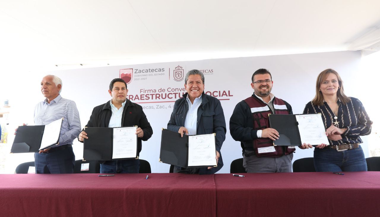 El Gobernador reiteró que para sacar adelante a Zacatecas se necesita de la comunión social y, por tanto, se dijo honrado con la firma del convenio mediante el cual da certeza a los habitantes de las colonias más vulnerables de que va a llegar la transformación y el beneficio a cada una de sus viviendas y a su entorno.