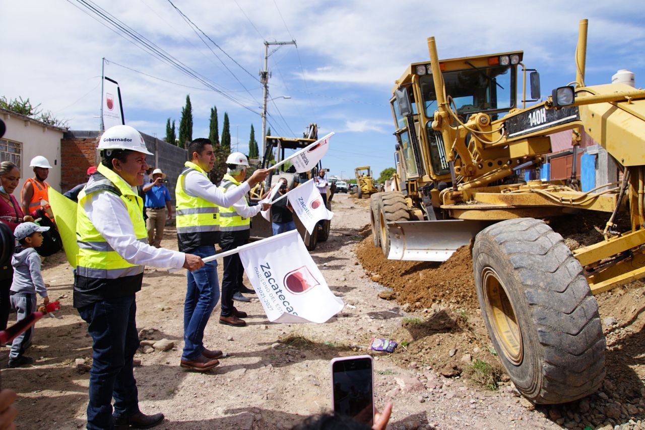 Trancoso, Zac., 04 de agosto de 2022.- El Gobernador David Monreal dio el banderazo de arranque a las obras de pavimentación de las calles Palma y Sierra Morena en Trancoso, como parte de las múltiples acciones convenidas que llevan a cabo el Gobierno de Zacatecas y el municipal para reconstruir esta parte del territorio estatal y llevar progreso a sus familias.