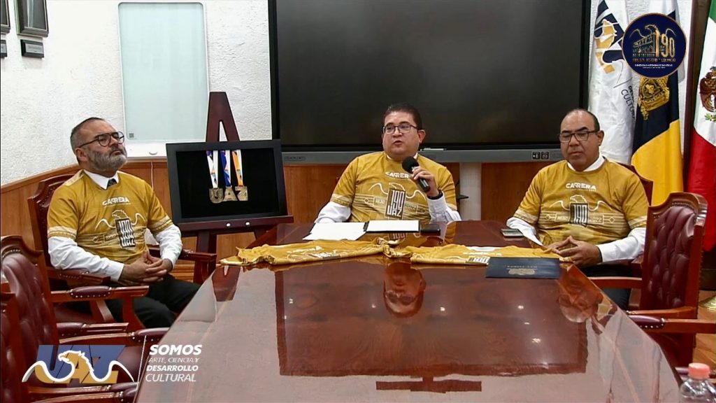 Dentro de las actividades por el 190 Aniversario de la Universidad Autónoma de Zacatecas (UAZ), el rector Rubén de Jesús Ibarra Reyes, acompañado por los secretarios general y académico, Ángel Román Gutiérrez y Hans Hiram Pacheco García, respectivamente, presentó la información general sobre la cuarta edición de la Carrera UAZ “Por el Orgullo Universitario”.