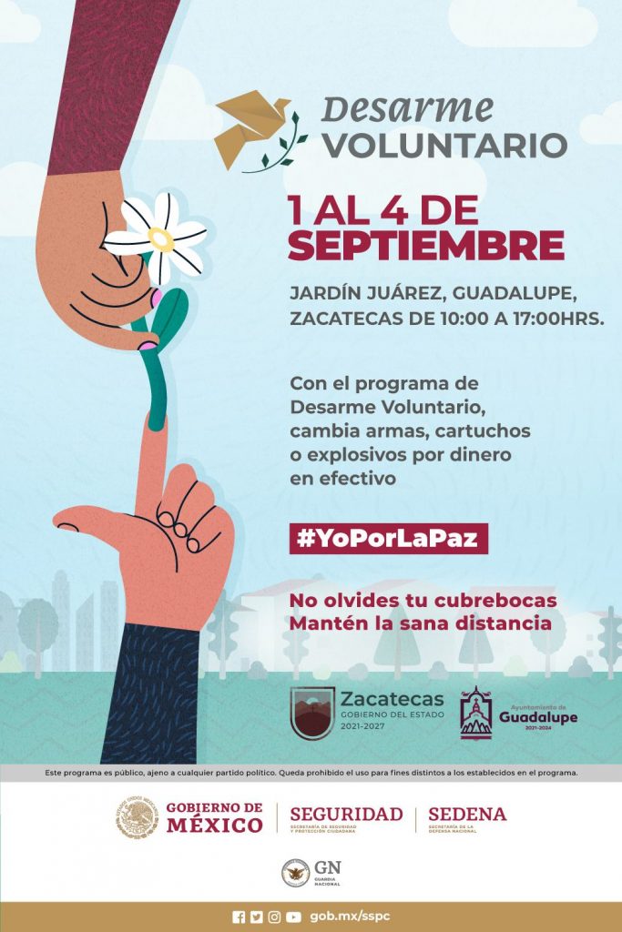 El Ayuntamiento de Zacatecas en conjunto con la Secretaría de la Defensa Nacional invitan a la ciudadanía al Desarme Voluntario.