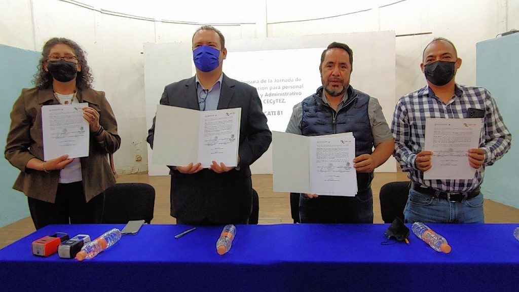 Julio César Ortiz Fuentes, director general del Cecytez, reconoció el interés de la parte sindical para consolidar el desarrollo profesional de sus agremiados, ya sean personal docente o administrativo, pues la consolidación de sus habilidades permitirá dar un valor agregado a la educación que recibe el estudiantado del Cecytez, reflejando así la política educativa del Gobernador David Monreal Ávila.