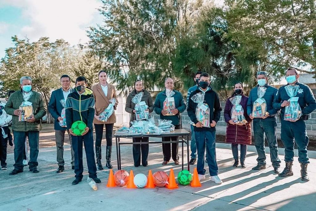 Después del acto cívico las autoridades municipales realizaron la entrega de materiales deportivos y didácticos, así como paquetes de útiles escolares.