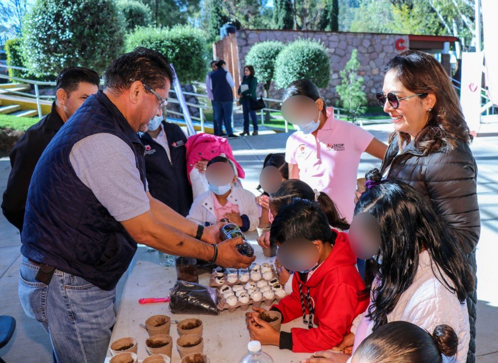 Estas actividades se llevaron a cabo en las instalaciones del SEDIF, donde las niñas y niños colaboraron en la siembra de semillas diversas en macetas hechas de material reciclable y biodegradable, acción mediante la cual se buscó generarles consciencia del cuidado y protección del medio ambiente.