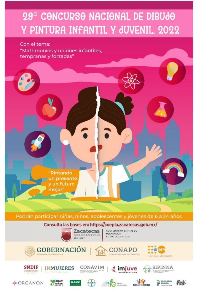 Zacatecas, Zac., 13 de octubre de 2022.- A través de la Coordinación Estatal de Planeación (Coepla), el Gobierno de Zacatecas, que encabeza el mandatario David Monreal Ávila, en colaboración con el Consejo Nacional de Población (Conapo), y el Fondo de Población de las Naciones Unidas (UNFPA), invita a niñas, niños, adolescentes y jóvenes de 6 a 24 años de edad a participar en el 29 Concurso Nacional de Dibujo y Pintura Infantil y Juvenil 2022.