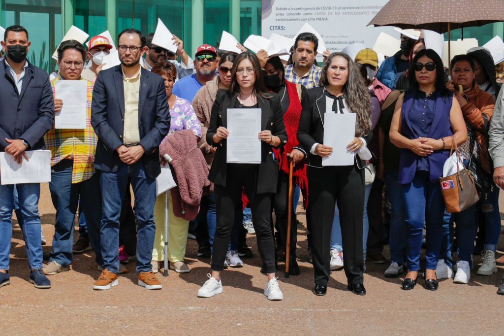 Este lunes un grupo de trabajadores del Ayuntamiento de Guadalupe, acompañados por las Diputadas Violeta Cerrillo y Lorena Oliva, presentaron en la Fiscalía Estatal una denuncia en contra de los ex alcaldes Enrique Flores y Samuel Díaz.