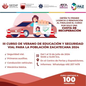Ofrece Gobierno de Zacatecas Curso de Verano de Educación y Seguridad Vial ▪️ Del 1 al 12 de julio, de 10:00 a 14:00 horas, en