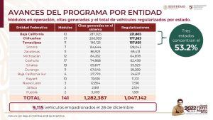 Por instrucción presidencial, el Programa de Regularización de Vehículos Usados de Procedencia Extranjera se extenderá al 31 de marzo de 2023, informó la secretaria de
