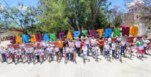 Sara Hernández de Monreal llevó despensas, aparatos funcionales, zapatos, entre otros Entregó 55 bicicletas para alumnas y alumnos de la Escuela Primaria Leobardo Reynoso