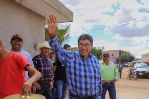 Fresnillo, Zac.- El presidente Municipal, Saúl Monreal Ávila inauguró la rehabilitación de las calles Pirul y Mezquite de la colonia Barrio Alto, obra que se